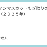 ぶどう園のお知らせ 未分類 2025.08.23 ぶどうは売り切れましたので、8月23日(土) 13:00に閉園しました。 なお、シャインマスカットのもぎ取りを9月中旬頃に開園する予定です。詳しい日程が決まり次第、あらためてお知らせいたします。